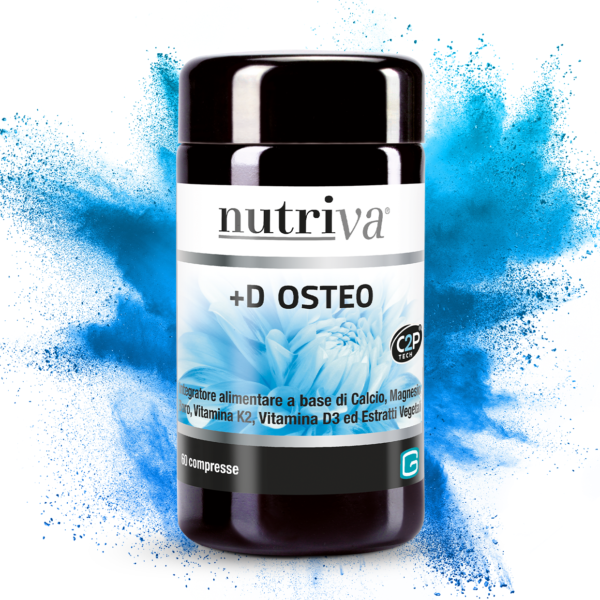 NUTRIVA +D OSTEO is a food supplement with Calcium, Magnesium, Boron, Vitamin K2 and Vitamin D3. With Calcium and Magnesium required for the maintenance of normal bones. With Vitamin D, which contributes to the normal absorption and utilization of Calcium and Phosphorus. 60 tabs format.
