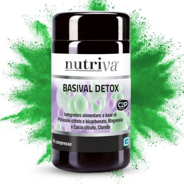 NUTRIVA BASIVAL DETOX is a food supplement with Mineral salts and Chlorella. Chlorella is an antioxidant that is useful for detoxifying the body. 60 cps format.