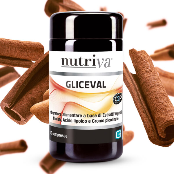 NUTRIVA GLICEVAL is a food supplement with plant extracts, Lipoic acid and Chromium. With Cinnamon and Gymnema to aid with carbohydrate metabolism. With Chromium, which contributes to the maintenance of normal blood glucose levels. 30 tabs format.