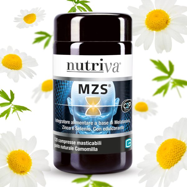 NUTRIVA MZS® is a Melatonin, Zinc and Selenium food supplement. Melatonin helps reduce the time it takes to fall asleep (the beneficial effect is obtained by taking 1 mg of melatonin shortly before going to bed) and eases the effects of jet lag (the beneficial effect is obtained by taking at least 0.5 mg shortly before going to bed on the first day of travel and for a few days after arriving at your destination). Zinc and Selenium contribute to normal immune system function and to the protection of cells from oxidative stress. Selenium also helps support normal thyroid function, while Zinc helps support normal cognitive function. Camomile is known for its effect on relaxation and mental wellbeing. Chamomile flavour