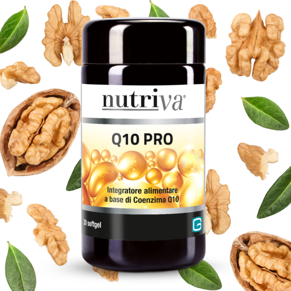 Olio di semi di girasole, Coenzima Q10 (ubichinone), Gelatina alimentare, Emulsionante: Lecitina di girasole; Agente di resistenza: Glicerolo; Vitamina E naturale (D-alfa-tocoferolo in olio di girasole); Vitamina B12 (Cianocobalamina), Coloranti: Ossidi di ferro.