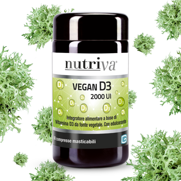 NUTRIVA VEGAN D3 is a plant-sourced Vitamin D3 food supplement. Vitamin D contributes to the normal absorption and utilization of calcium and phosphorus, to the maintenance of normal bones, and to the maintenance of normal muscle function. In children, Vitamin D contributes to normal immune system function and is necessary for normal growth and for bone development.